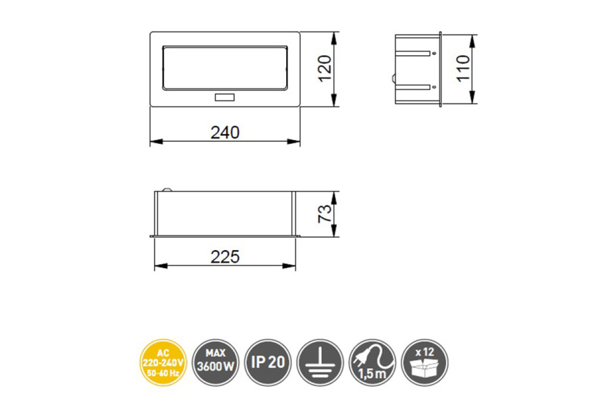 Максимальная нагрузка, W:3600 W, 16A