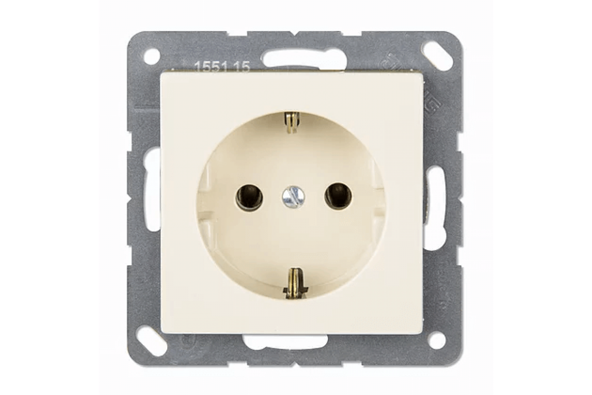 Розетка с з/к 16А, 250V слоновая кость с пружинными зажимами для проводов до 2,5 мм2